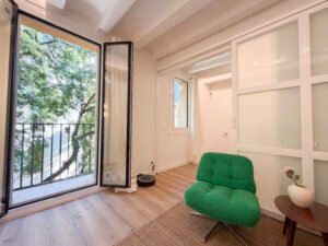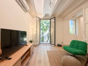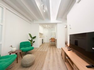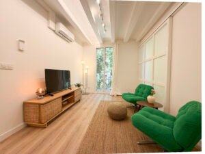 Descripción: Piso reformado a estrenar y amuebaldo en alquiler en el corazón del barrio del Born. La vivienda se encuentra en una finca histórica de 1850 de solo 4 plantas. El piso, completamente reformado, cuenta con una superficie construida de 74 m² y una superficie útil de 71 m². Distribuido en 2 habitaciones dobles, 1 baño completo, salón-comedor y cocina integrada. Dispone de calefacción y aire acondicionado por splits, además de ventanas con puente térmico que garantizan un buen aislamiento térmico y acústico. Piso muy luminoso, cómodo y listo para entrar a vivir. Se alquila con muebles. Situado en una zona céntrica, con todos los servicios, comercios y transporte público a pocos minutos. Ideal para quienes buscan vivir en una zona con encanto en el centro de Barcelona. Mostrar toda la descripción