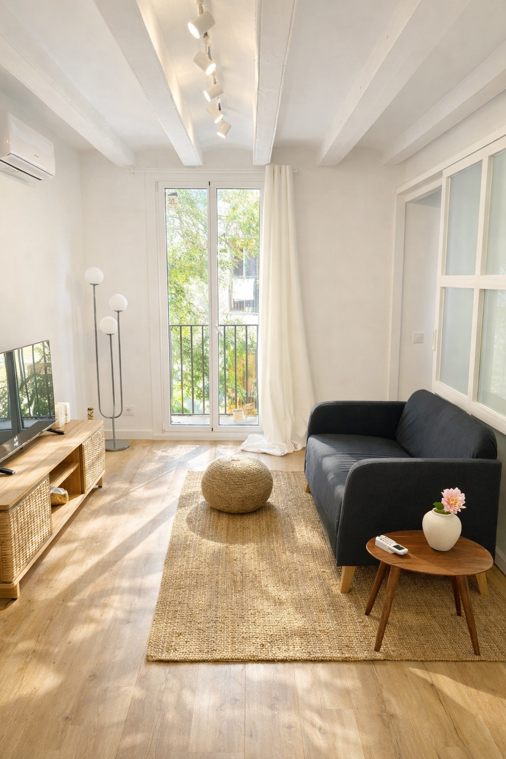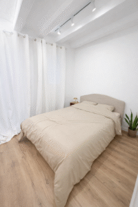 Distribuido en 2 habitaciones dobles, 1 baño completo, salón-comedor y cocina integrada. Dispone de calefacción y aire acondicionado por splits, además de ventanas con puente térmico que garantizan un buen aislamiento térmico y acústico.